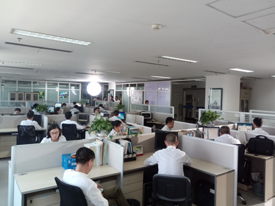 隨著導(dǎo)演一聲令下,一位年輕的同事從座位上站起,拿著報告走到旁邊同事的工位前,兩人輕聲討論著。